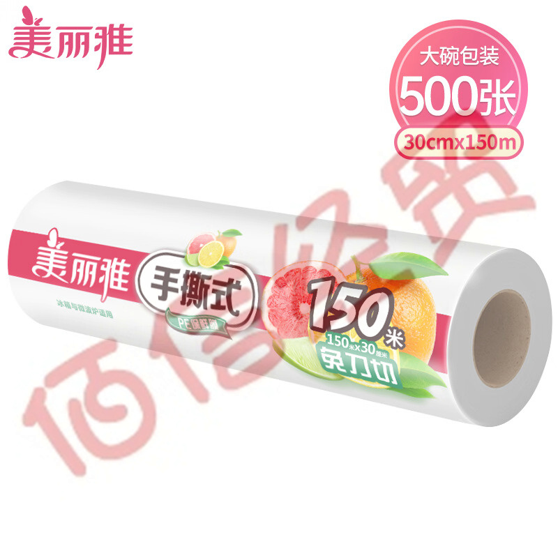 ¥33.80美麗雅 食品保鮮膜升級易撕取 一次性耐高溫家用大號 可蒸可微波30cm*30米2卷共60米(紙筒內(nèi)徑31mm)(24包/箱)(10個起售)
