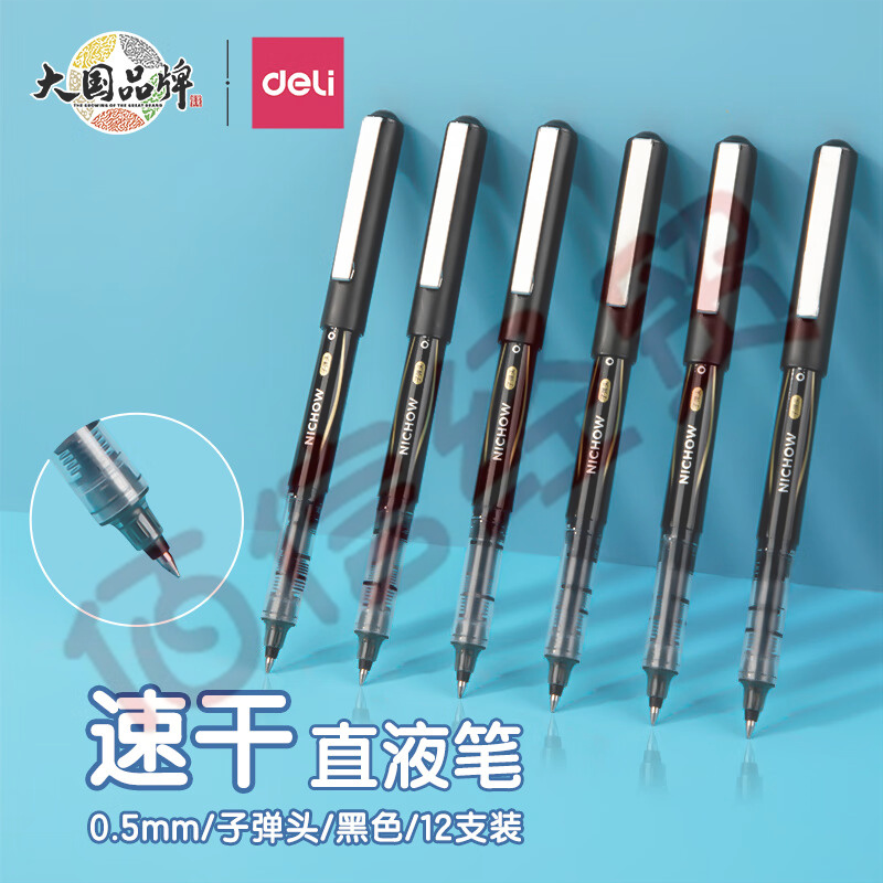 得力(deli)直液筆簽字筆 0.5mm子彈頭辦公商務(wù)中性筆走珠筆 水筆會議筆 黑色 12支/盒S656-Z1 自營