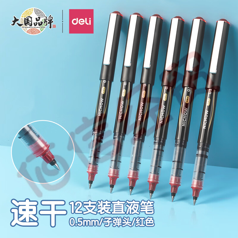 得力(deli)直液筆簽字筆 0.5mm子彈頭辦公商務(wù)中性筆 水筆走珠筆 紅色 12支/盒 S656-Z1 自營(yíng)