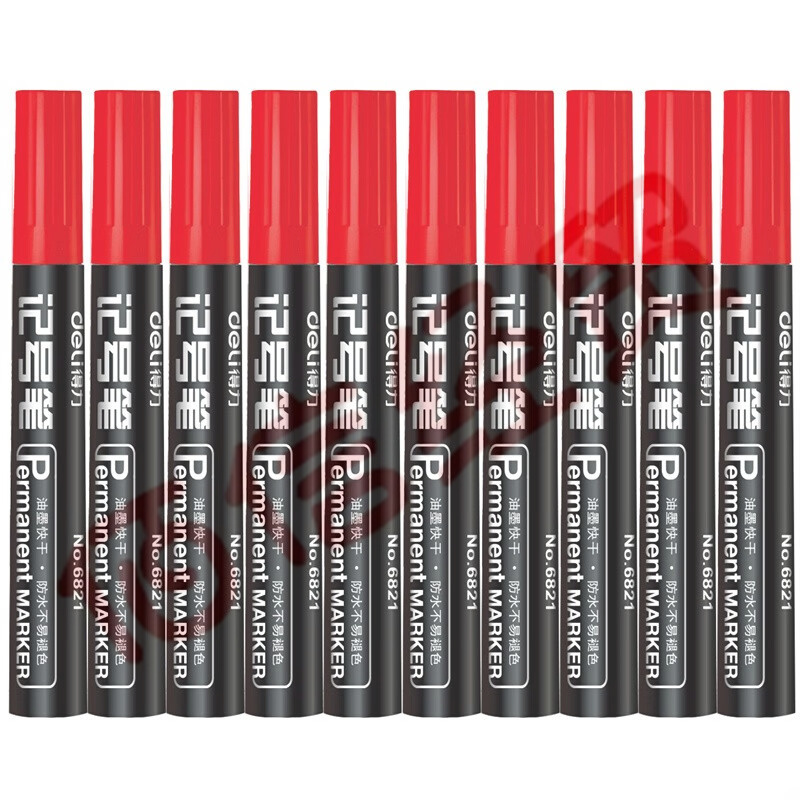得力思達(dá)6821記號(hào)筆(紅)(10支/盒)5盒裝 油性粗頭記號(hào)筆物流黑色大頭筆 簽名筆馬克筆 自營(yíng)