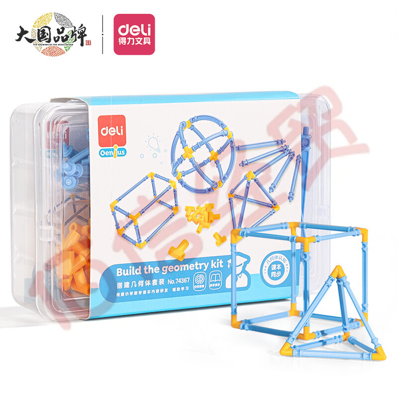 得力(deli)兒童學生幾何體模型教具 小學生一年級教學套裝幾何體認知搭建 啟蒙早教益智74367 自營
