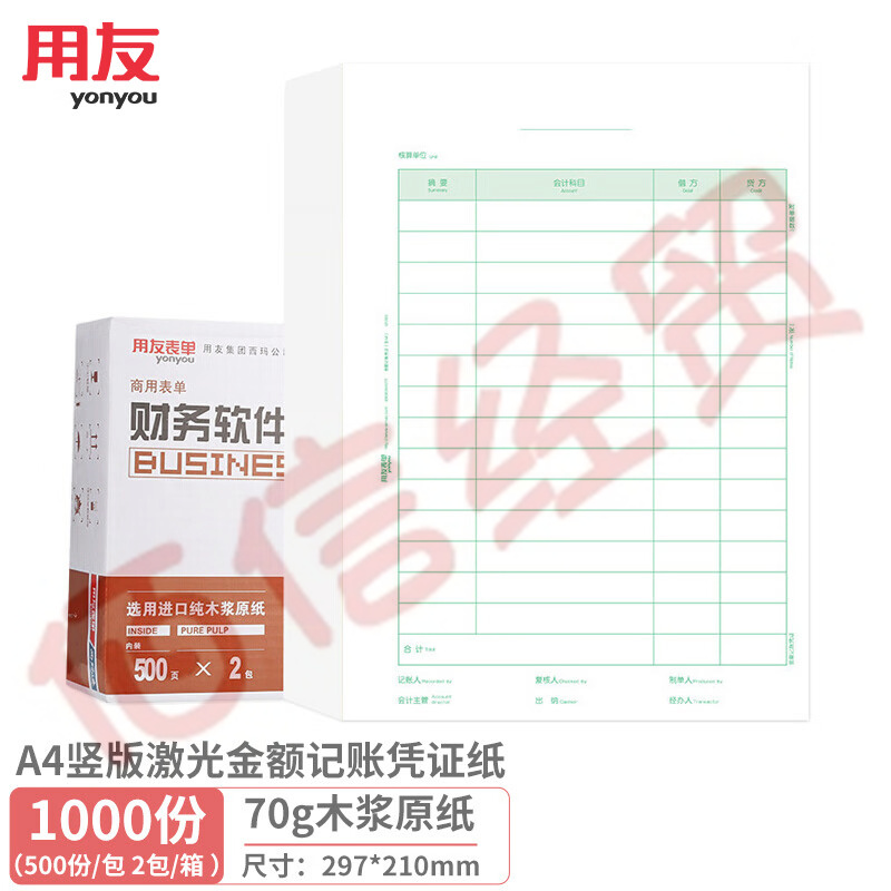 西瑪用友KPJ105 A4豎版激光金額記賬憑證210*297--500份/包 2包/箱(整箱售) 自營