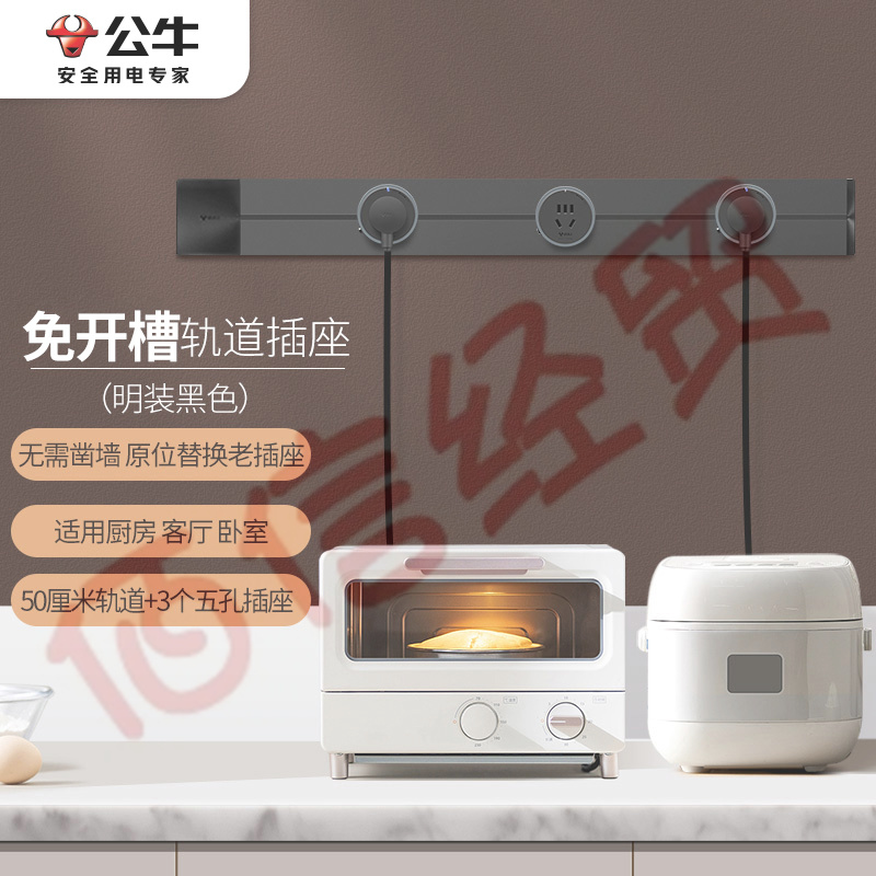 公牛(BULL)明裝 軌道插座 可移動(dòng)墻壁插座壁掛式/插線板/接線板 多功能免打孔 50厘米軌道+3個(gè)五孔插座黑色 自營