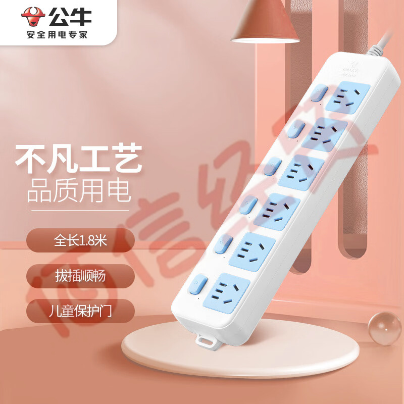 ¥97.00公牛(BULL)20W PD蘋(píng)果快充插座/插線板/插排/接線板 Type-c口+USB口+6插孔 全長(zhǎng)1.8米 GNV-U12033