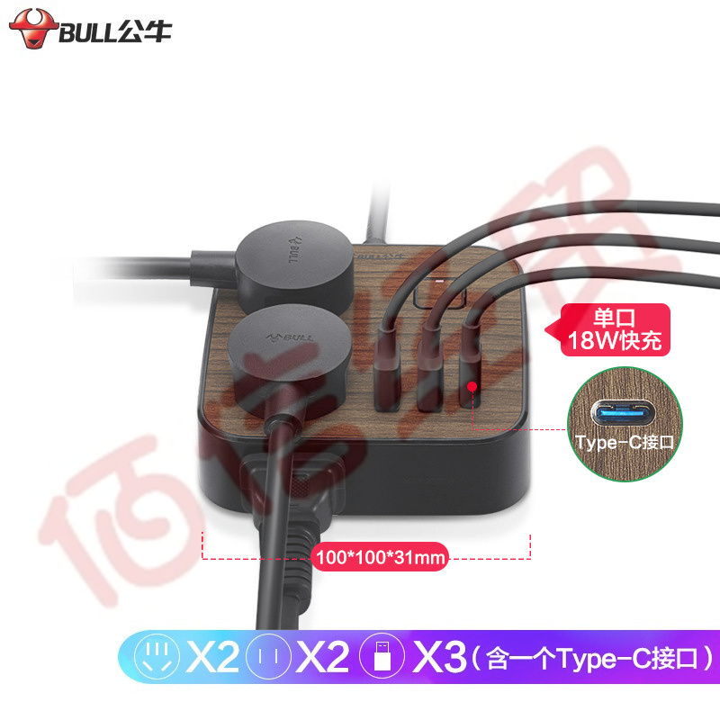 公牛(BULL)公牛桌洞USB插座/插線板/插排/排插/接線板/拖線板 5插孔+2USB口 GN-U2050