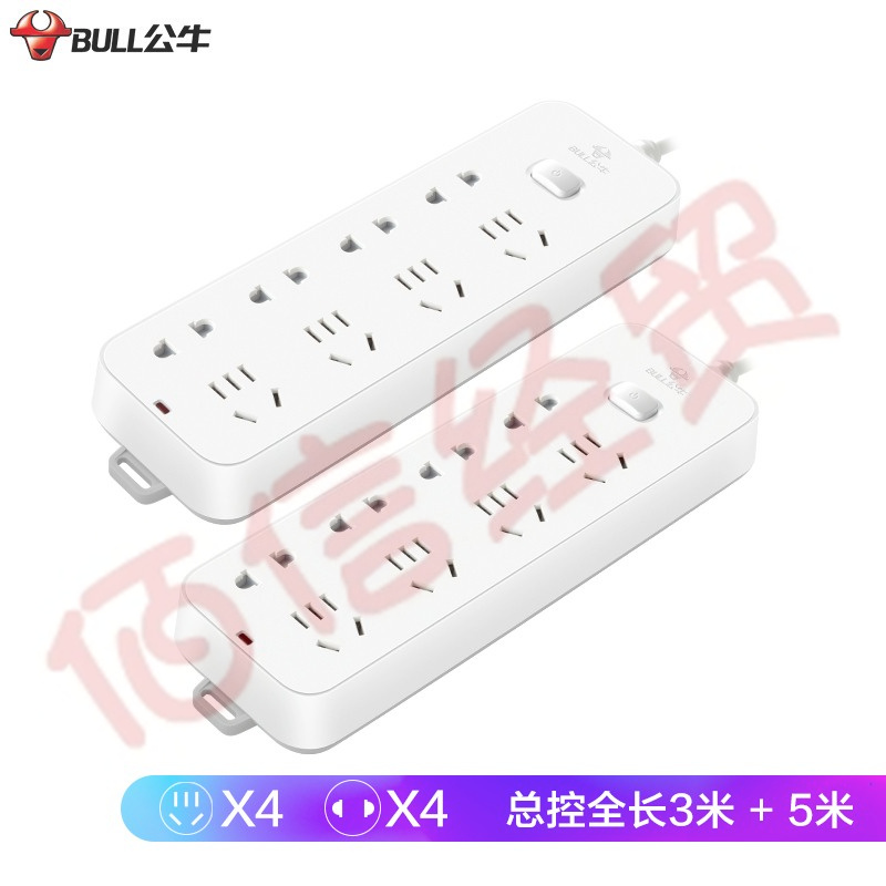 公牛(BULL)新國標(biāo)插座/插線板/插排/排插/接線板 8位總控3米+5米套裝 GN-B3440 自營