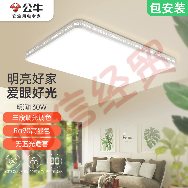 公牛(BULL)吸頂燈 明潤長方形臥室燈客廳燈全屋燈北歐風(fēng)簡約現(xiàn)代三段調(diào)光調(diào)色130W L960xW660xH102.5mm 自營