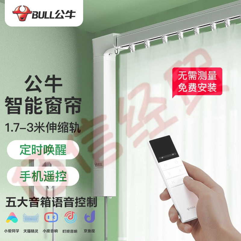 ¥1114.50公牛(BULL)智能窗簾 伸縮軌窗簾 小愛同學小度等音箱控制(電機+1.7-3米伸縮軌+遙控器+免費安裝)GDC035A