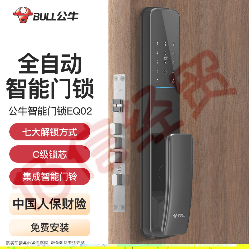 公牛(BULL) 智能門鎖 家用防盜門電子鎖 指紋鎖密碼鎖APP/wifi帶門鈴 C級(jí)鎖芯 全自動(dòng)電子鎖 EQ02盼盼鎖體 自營