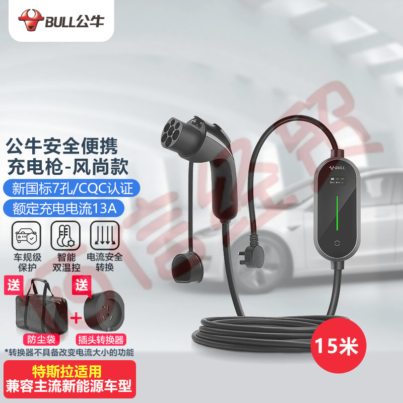 公牛新能源汽車充電器便攜充電槍適用于特斯拉小鵬比亞迪等 風尚款15M-D2-A16B 自營