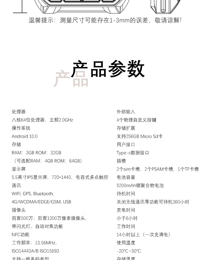 漢瑪智慧(Hanmawin)手持式人臉識別數字電子哨兵測溫考勤在線身份證核驗設備 標準版 HM5102HTQS 自營
