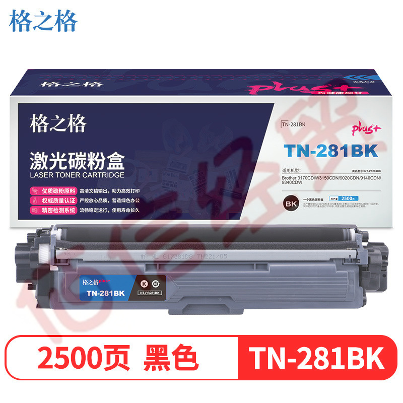 格之格TN-281BK碳粉盒NT-PB281BKplus+適用兄弟3170CDW 3150CDN 9020CDN 9140CDN 9340CDW打印機(jī)粉盒 自營(yíng)