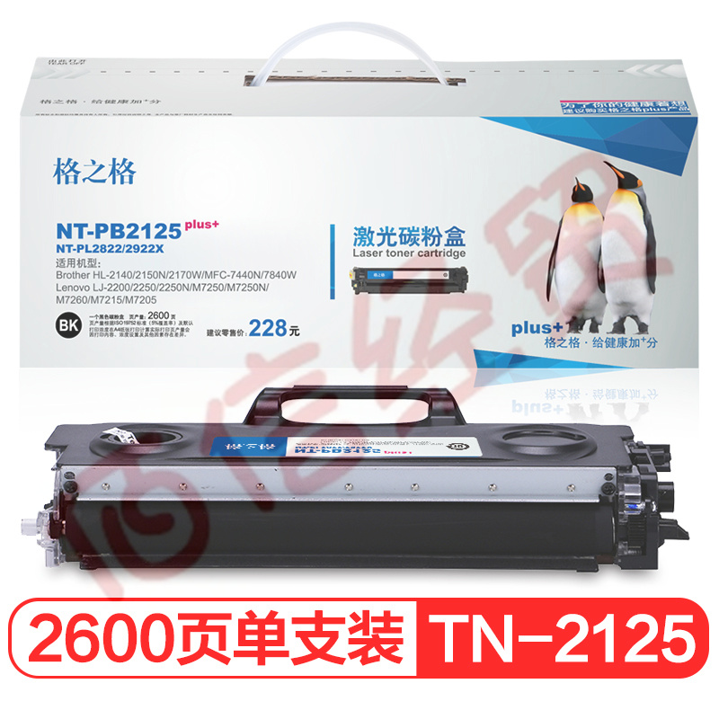 格之格 TN-2125黑色墨粉盒PB2125plus+適用兄弟HL-2140 2150N 2170W MFC-7440N 7840W打印機(jī)粉盒 自營