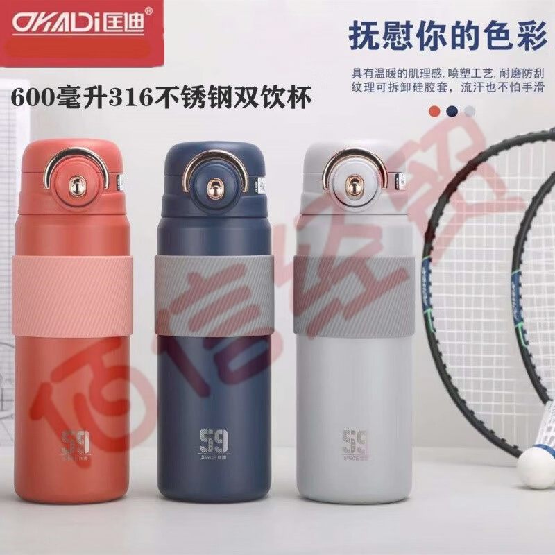 匡迪(DKADI)匡迪保溫杯大容量男女吸管杯戶外雙飲口便攜水杯316不銹鋼 600毫升幽黛藍(lán) 600毫升 自營