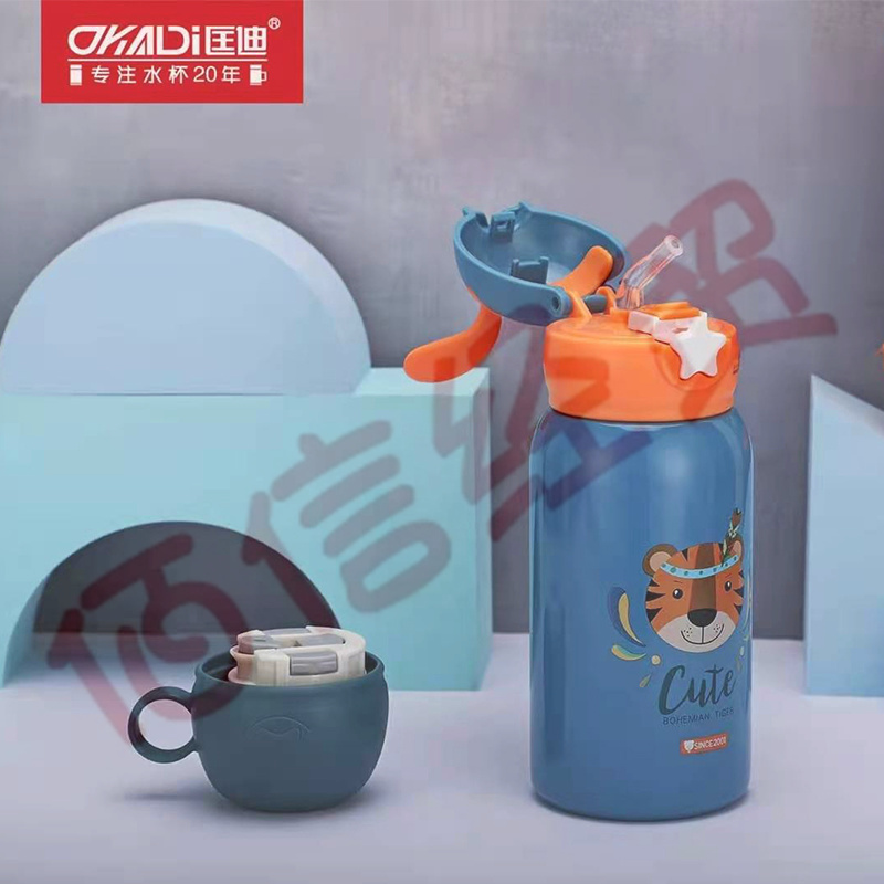 新款匡迪兒童保溫杯真空304不銹鋼內(nèi)膽兒童吸管杯兩用學(xué)生兒童保溫杯 綠色500ml杯套 自營(yíng)