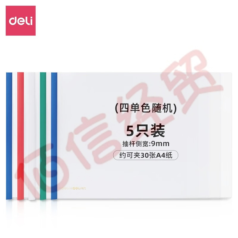 得力(deli)橫款抽桿報告夾5只裝透明資料夾塑料拉桿夾防水耐磨加寬加厚收納夾學生試卷夾 顏色隨機 A4/可夾30張-5只裝 63101 自營