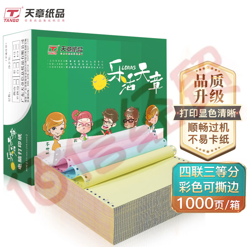 天章(TANGO)樂活天章 針式打印紙 四聯(lián)三等分撕邊電腦打印紙 彩色四聯(lián)打印紙241-4-1/3S 白紅藍(lán)黃 1000頁/箱 自營