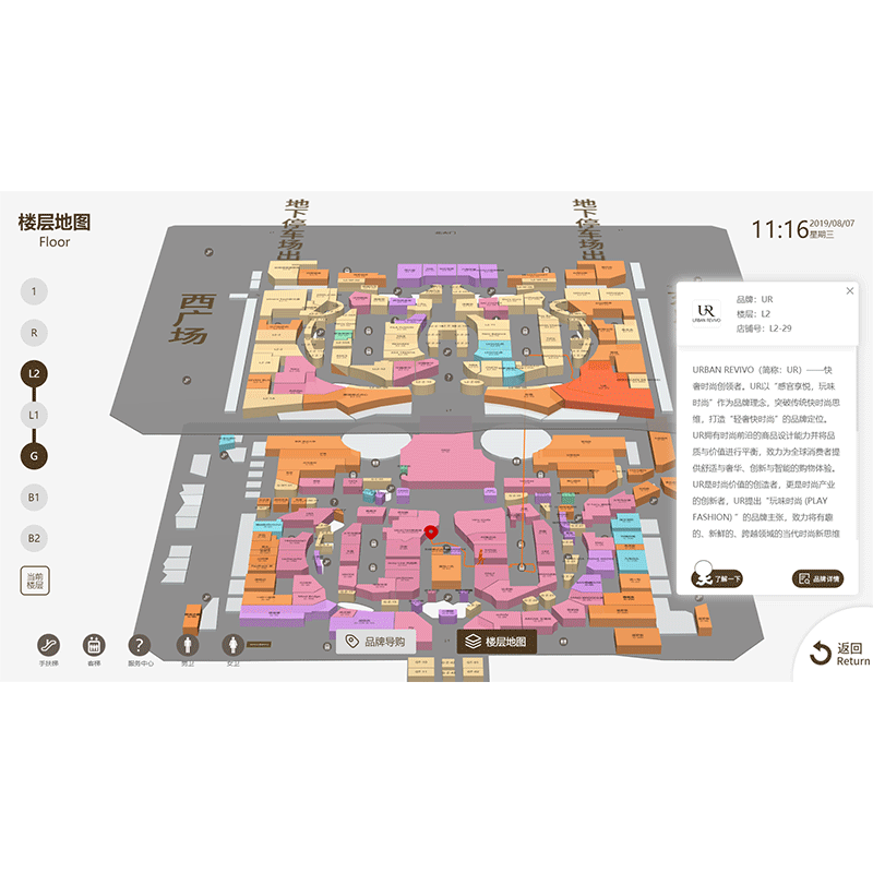 恩騰商場導航軟件標識導向路線圖自助查詢樓層地圖導航終端一體機系統(tǒng)商場地下室停車場導航軟件 樓層索引機 定制款橫屏 自營