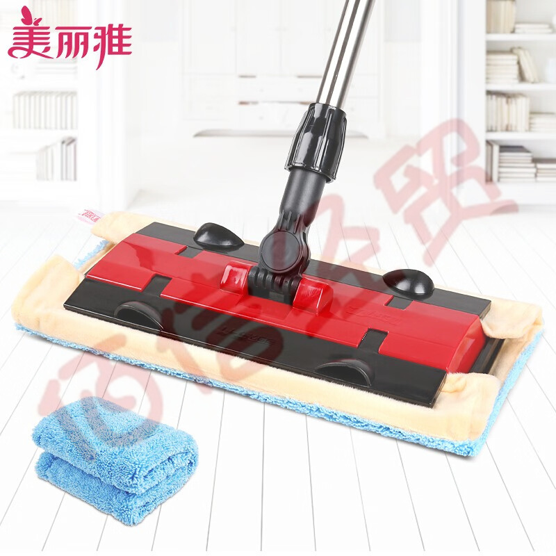 美麗雅 經(jīng)典平板拖把夾布地拖 干濕兩用木地板墩布 共2張拖把替換布 自營