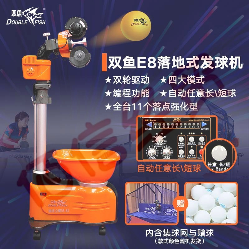 雙魚(DOUBLE FISH)乒乓球發(fā)球機(jī)E8 家用落地式自動(dòng)發(fā)球器 乒乓球訓(xùn)練器 含乒乓球集球網(wǎng) 自營