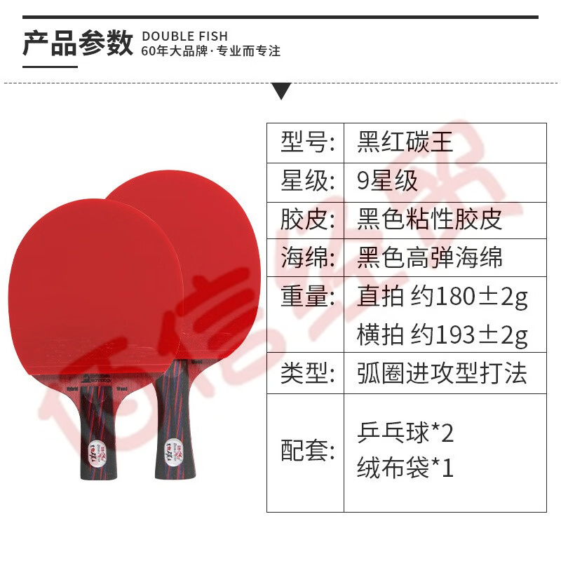 雙魚(DOUBLE FISH) 黑紅碳王9星乒乓球拍專業(yè)訓(xùn)練比賽乒乓球拍 橫拍 自營