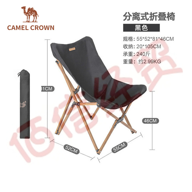 駱駝CAMELCROWN戶外露營椅子便攜式折疊躺椅野營休閑釣魚凳子月亮椅野外裝備用品 卡其、黑色 自營
