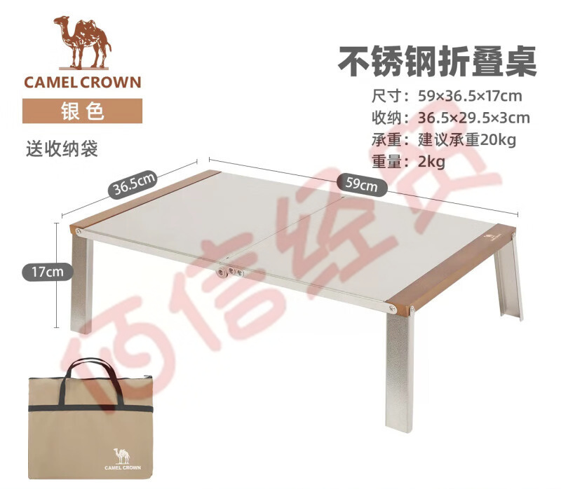 駱駝CAMELCROWN戶外便攜不銹鋼折疊桌精致露營擺攤夜市野餐桌子野營簡易長桌 1J32350509,不銹鋼桌 自營