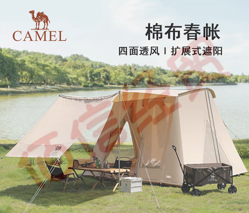 駱駝(CAMEL)戶外精致露營(yíng)野外棉布加厚天幕帳篷野營(yíng)便攜式屋脊春日帳裝備 1V32267130,流沙色 自營(yíng)