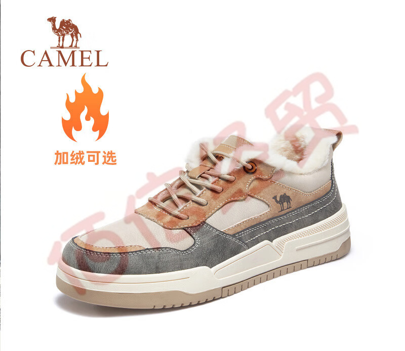 駱駝(CAMEL)男鞋款男士板鞋潮流百搭加絨小白鞋運動休閑 GE12235350R,沙/灰,男(加絨) 38 自營