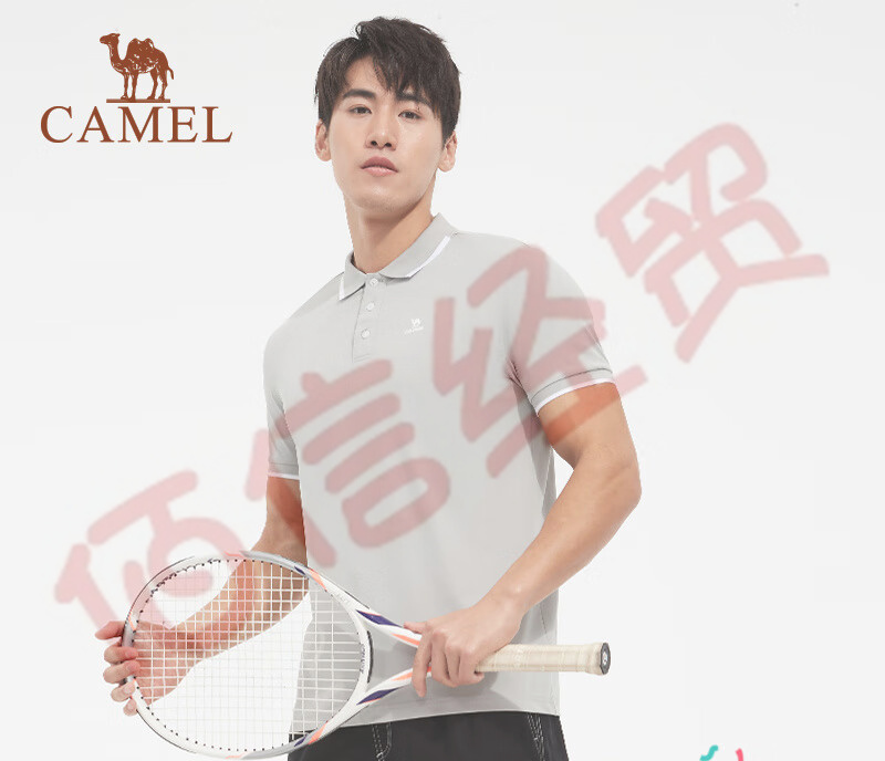 駱駝(CAMEL)polo衫季薄款男款翻領(lǐng)寬松短袖新款純色運(yùn)動(dòng)T恤 C452251002,淺灰,男 M 自營