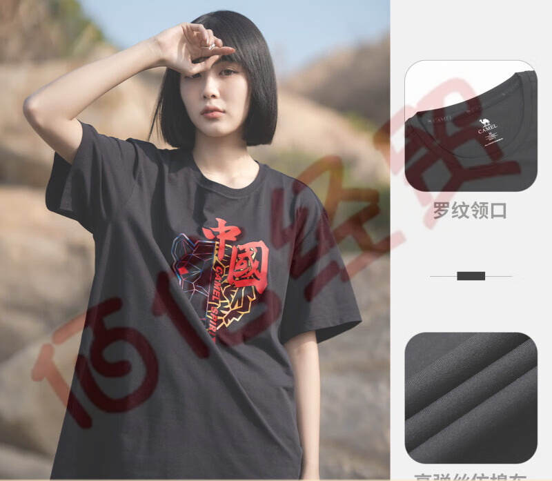 駱駝(CAMEL)戶外短袖男款春夏速干T恤國(guó)潮印花時(shí)尚休閑上衣 7012221005,幻影黑 XL 自營(yíng)