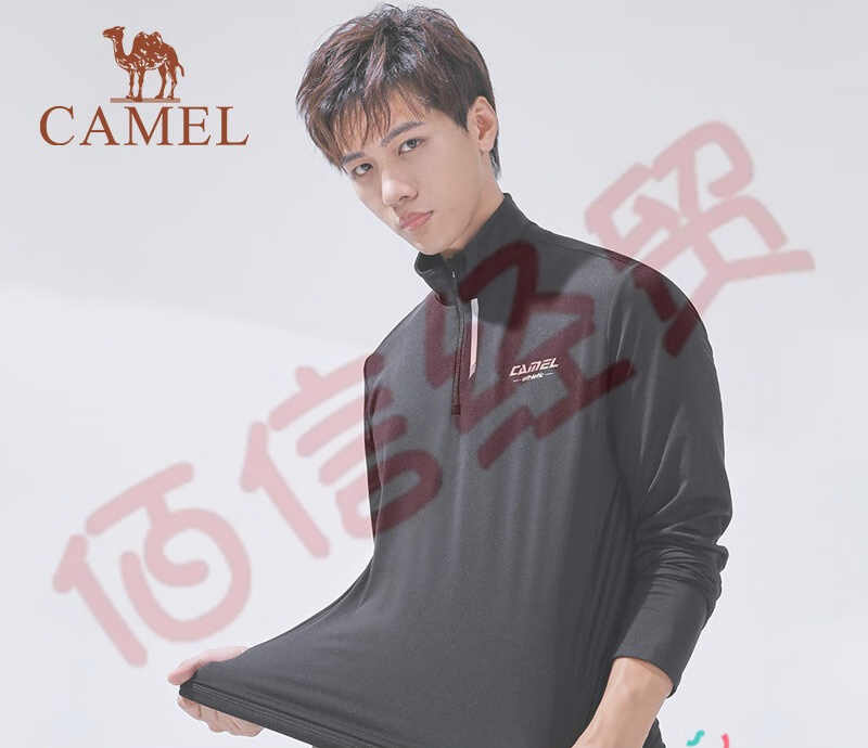 駱駝(CAMEL)運動長袖T恤男士薄款運動快干衣服立領針織上衣 基礎黑 XL 自營