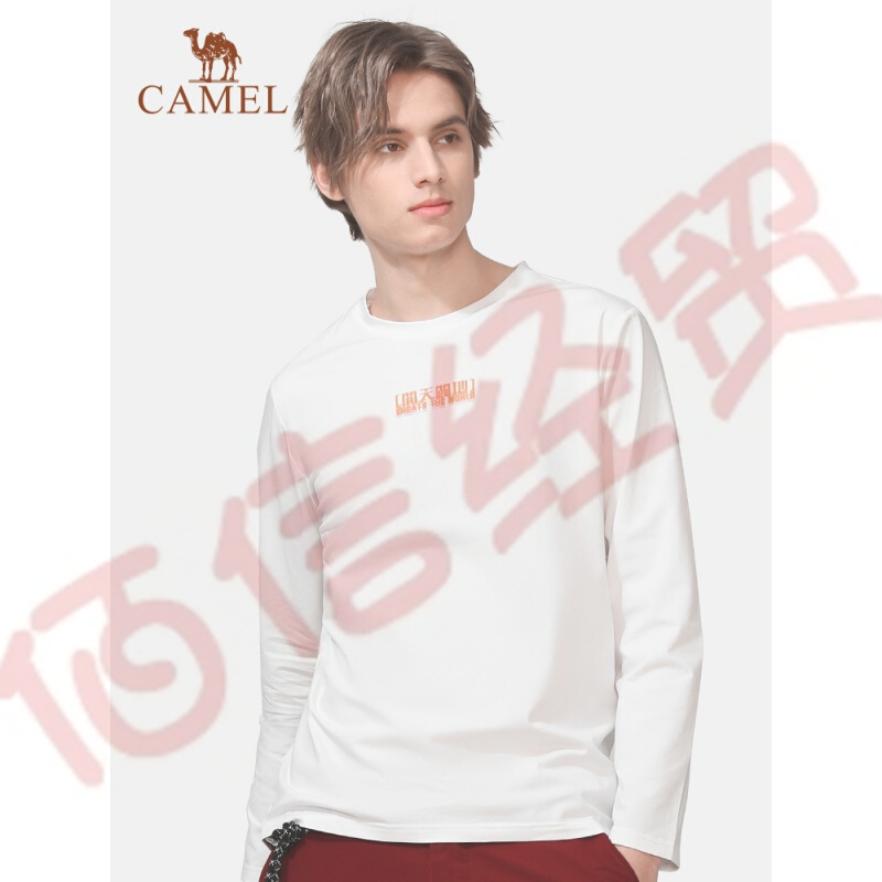 駱駝(CAMEL)戶外男款長袖T恤寬松潮牌圓領(lǐng)衛(wèi)衣寬松休閑上衣 A1S2TF115,白色,男款 L 自營