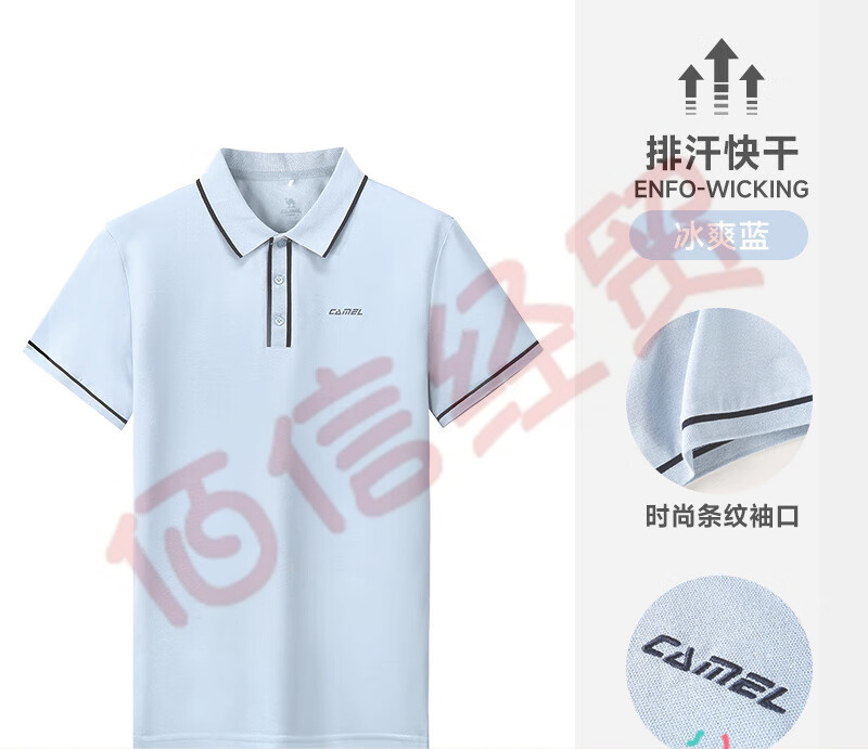 駱駝(CAMEL)男裝速干POLO衫男士2023春夏款翻領(lǐng)寬松透氣情侶短袖女上衣 J13BA23014,冰爽藍(lán),男 M 自營