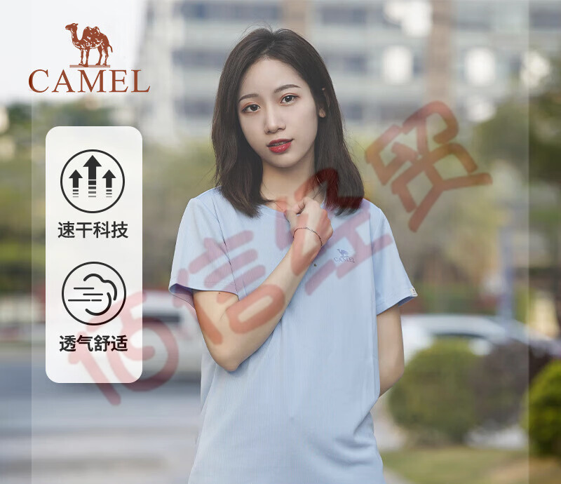 駱駝(CAMEL)戶外速干衣女款春夏季國潮印花時尚寬松透氣休閑上衣 7012212001,極地白,女 S