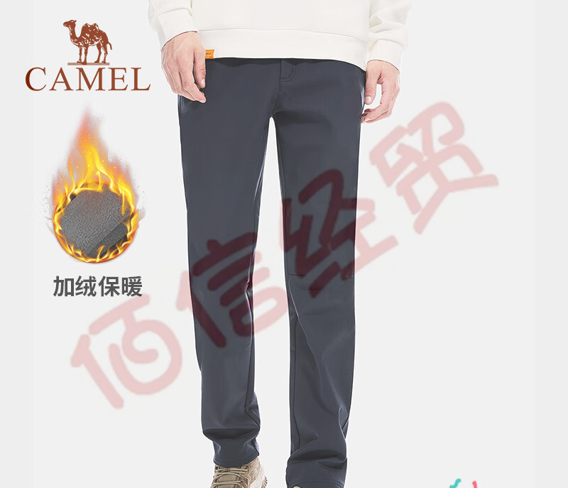 駱駝(CAMEL)戶外軟殼褲長褲男款保暖休閑褲防潑水防風登山褲 A1W2VV125,墨藍,男 XL 自營