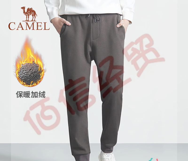 駱駝(CAMEL)男裝加絨加厚休閑褲男士小腳搖粒絨針織保暖長(zhǎng)褲男褲 DBP510114,深灰,男 L 自營(yíng)