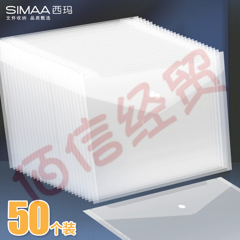 西瑪(SIMAA)50個裝 A4按扣學(xué)生透明文件袋 加厚 防水試卷資料收納袋 辦公文件檔案袋 辦公用品 文具 21244 自營