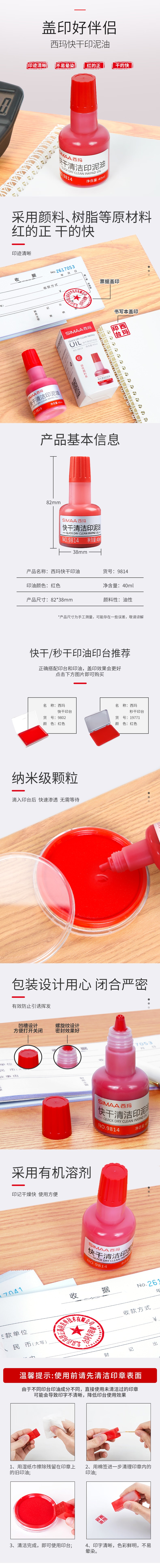 西瑪(SIMAA)快干清潔印泥油紅色 印油印泥 40ml財(cái)務(wù)印章 辦公用品 9814(10個(gè)起售) 自營