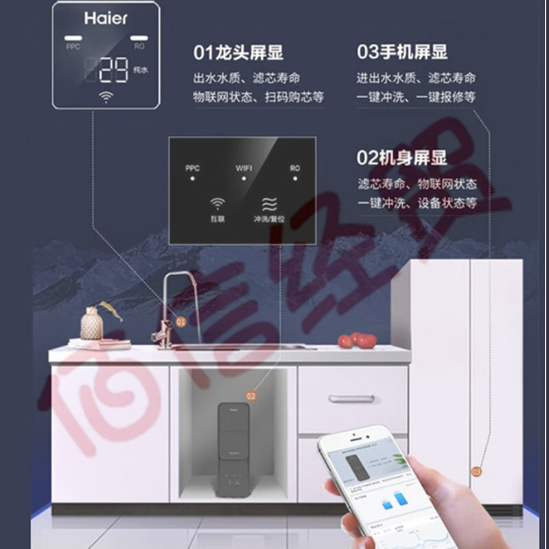 海爾(Haier) 凈水器家用凈水機(jī) RO反滲透純水機(jī)1200G大通量無(wú)桶雙出水直飲機(jī) HRO12H59-2U1 自營(yíng)