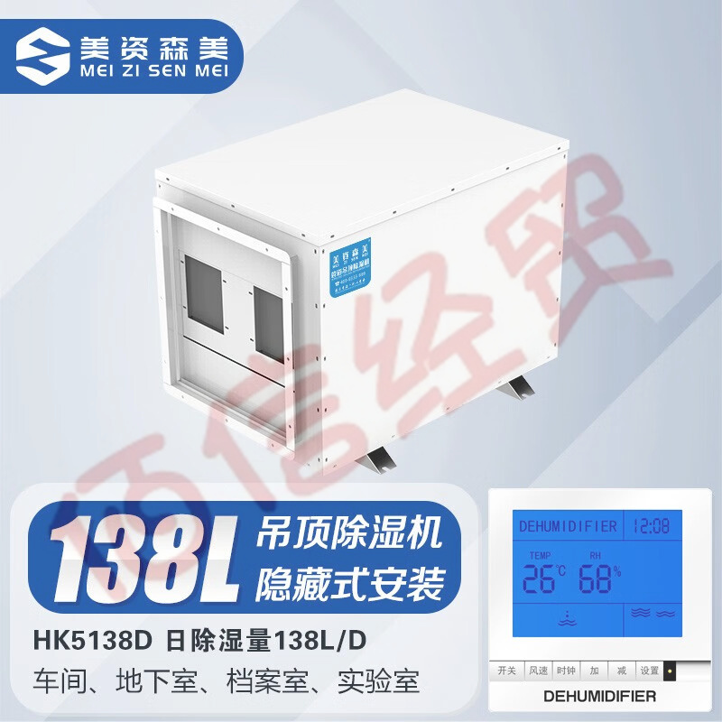 美資森美(MEIZISENMEI) 吊頂除濕機(jī)壁掛式工業(yè)中央抽濕機(jī)地下室管道除濕器吸頂式 HK5138D 日除濕量138L/D 自營