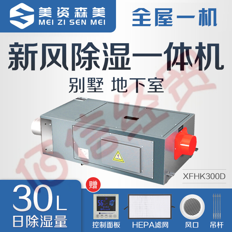 美資森美(MEIZISENMEI)新風(fēng)除濕凈化一體機(jī)吊裝式中央管道除濕機(jī)商用別墅地下室換氣隱藏安裝吊頂全屋一機(jī)單向流 XFHK300D 自營