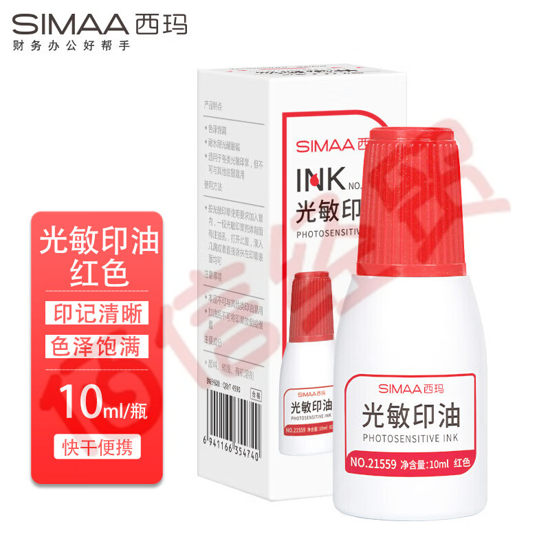 西瑪(SIMAA)10ml財(cái)務(wù)印章光敏印油 紅色印章印臺(tái)印油 財(cái)務(wù)專(zhuān)用 辦公用品 21559(10個(gè)起售) 自營(yíng)