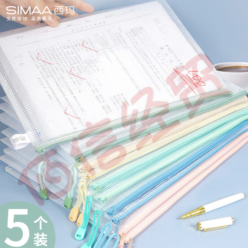 西瑪(SIMAA)莫蘭迪色系5只A4 混裝網(wǎng)格拉鏈袋?試卷收納袋 辦公學(xué)習(xí)文件袋資料袋 6021 自營