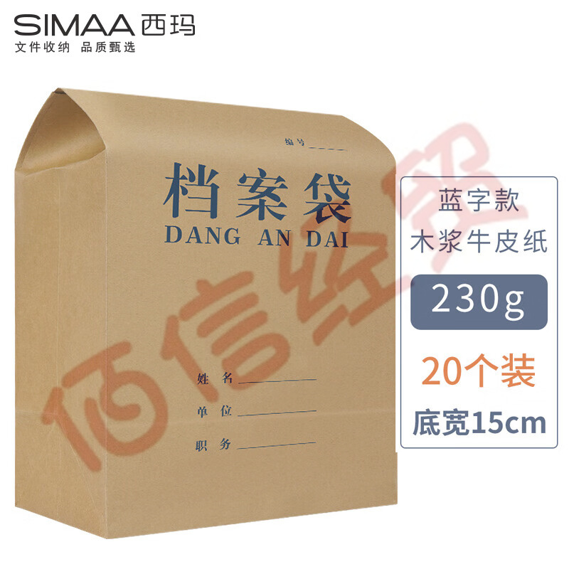 西瑪6847木漿牛皮紙檔案袋藍(lán)字15cm-20 木槳230g 240*340*150mm 20個(gè)/包 20包/箱(紅、藍(lán)兩色下單跟客服聯(lián)系)(整箱售) 自營(yíng)