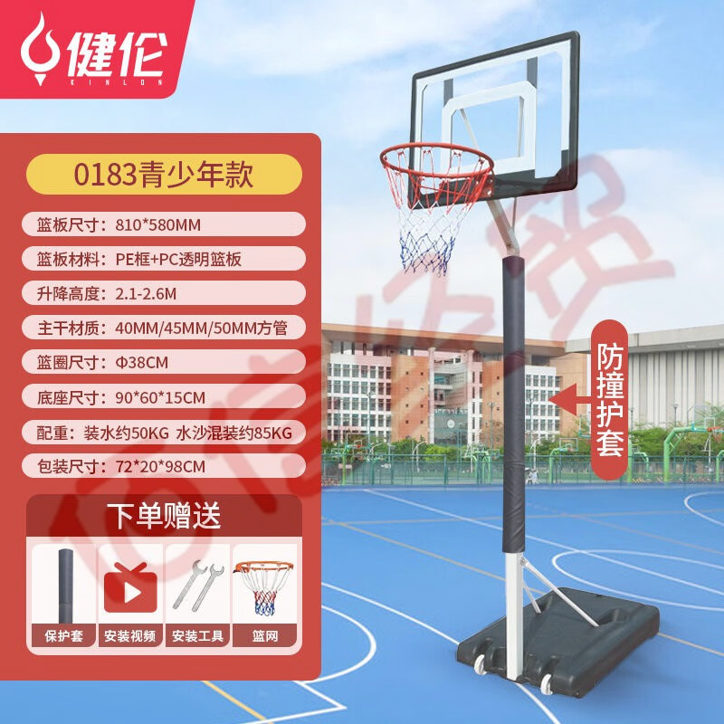 健倫(JEEANLEAN) 籃球架成人可升降式家用戶(hù)外青少年兒童可移動(dòng)便攜式投籃架 0183青少年版+保護(hù)套 升降調(diào)節(jié) 自營(yíng)