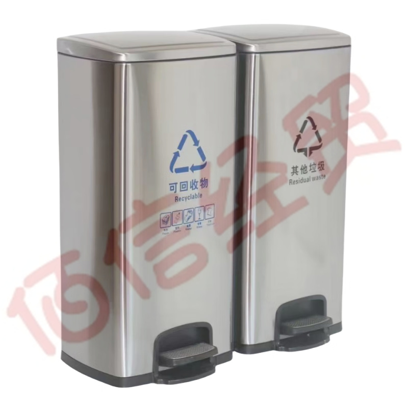 乙晨合分類垃圾桶帶輪垃圾桶腳踏垃圾桶金屬環(huán)衛(wèi)垃圾桶 30L三桶不銹鋼腳踏 自營