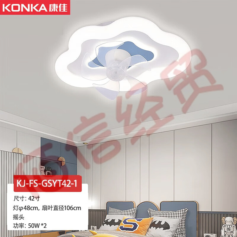 康佳(KONKA)風(fēng)扇燈輕奢金色吊扇燈歐美式客廳臥室燈具中式燈飾餐廳燈 橙色風(fēng)扇燈 自營