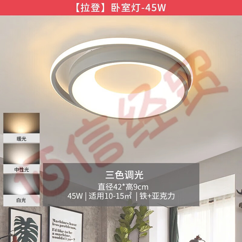 康佳(KONKA)LED吸頂燈后現(xiàn)代高端線條客廳臥室餐廳燈具燈飾套餐 45瓦【拉登】-三色調(diào)光圓臥室燈 自營