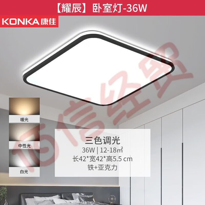 康佳(KONKA)LED客廳燈北歐簡約大氣臥室吸頂燈 36W三色調(diào)光方臥室燈 自營